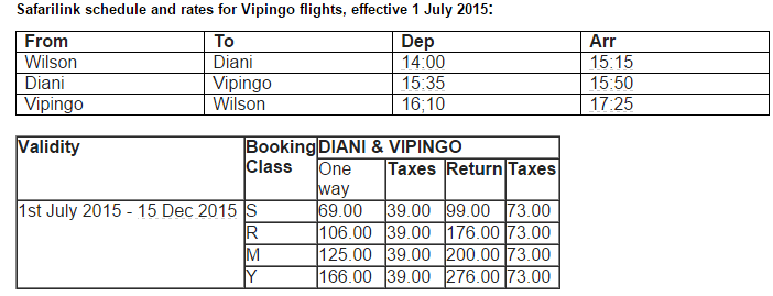 Operated by a Dash 8 – 100 Safarilink aircraft with capacity of 35 passengers , the new service is designed to provide residents, business and leisure travellers with a daily service and an alternative convenient route to Malindi or Moi International airports in Mombasa.