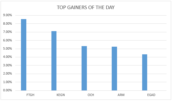 The top gainer of the day was Flame Tree Group Holdings Ltd with 8.57 percent at a price of 7.60 shillings per share. Kenya Electricity Generating Company Ltd came in second with 7.10 percent at a price of 8.30 shillings per share while Olympia Capital Holdings Ltd posted 5.33 percent at a price of 3.95 shillings per share. ARM Cement Ltd and Eaagads Ltd each posted a positive deviation of 5.26 and 4.35 percent respectively at a price of 30.00 and 24.00 shillings per share respectively.