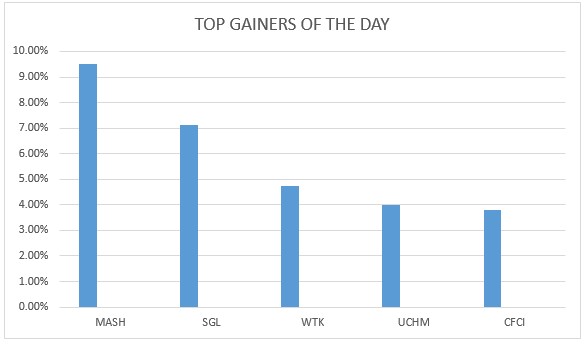 Marshalls (E.A) Ltd was the top gainer of the day. The company gained 9.52 percent at the price of 9.20 shillings per share. It was followed by Standard Group Ltd which gained 7.14 percent at the price of 3.00 shillings per share. Williamson Tea Kenya Ltd, Uchumi Supermarket Ltd and Liberty Kenya Holdings Ltd gained 4.74, 4.00 and 3.81 percent respectively at the price of 199.00, 3.90 and 15.00 shillings per share.