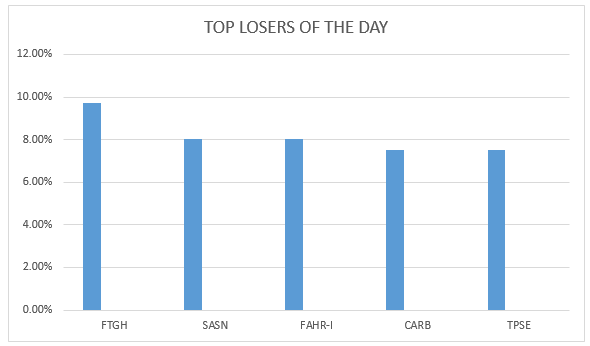 Flame Tree Group was the top loser of the day with 9.71 percent at the price of 4.65 shillings per share followed by Sasini Tea and Coffee with a loss of 8.05 percent at the price 18.85 shillings per share. See the table below: