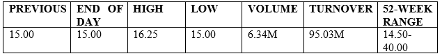 The table below shows the most traded in shares of the day led by WPP ScanGroup which posted a volume of 6.34 million and a market capital of 5.68 billion: