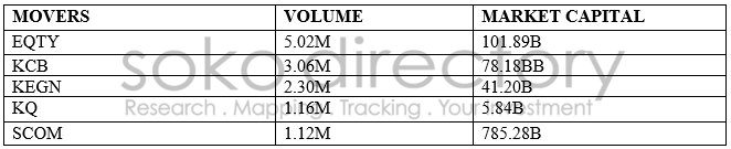 Car and General (K) was the top loser of the day with 9.26 percent at the price of 24.50 shillings per share followed by Eaagads with a loss of 9.09 percent at the price 20.00 shillings per share.