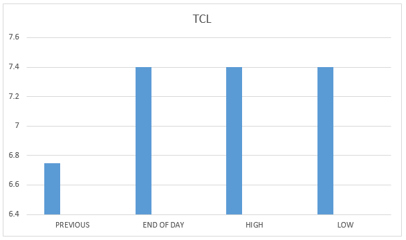 Trans-Century had a volume of 100, a total turnover of 740.00 and its 52-week range stands at 4.20-14.50.