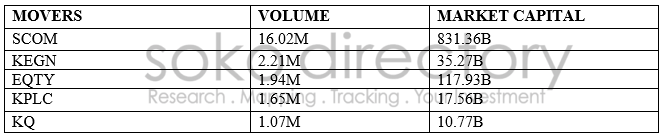 The table below shows the most traded in shares at the NSE on Monday