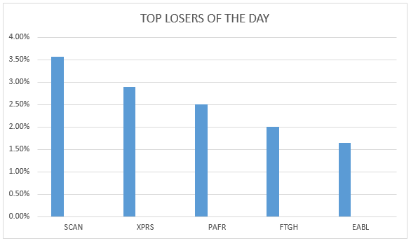 Flame Tree Group and East African Breweries closed the top five losers of the day on Wednesday with 2.00 and 1.64 percent respectively at the price of 4.90 and 240.00 shillings per share respectively.