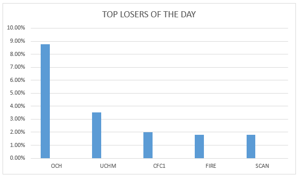 Olympia Capital was the top loser of the day. The company lost 8.77 percent at the price of 2.60 shillings per share the same position it was on Monday.