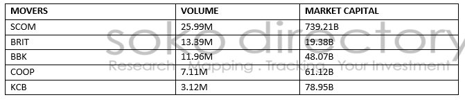 Uchumi Supermarket and Liberty Kenya lost 3.51 and 2.00 percent respectively at the price of 2.75 and 12.25 shillings per share respectively.