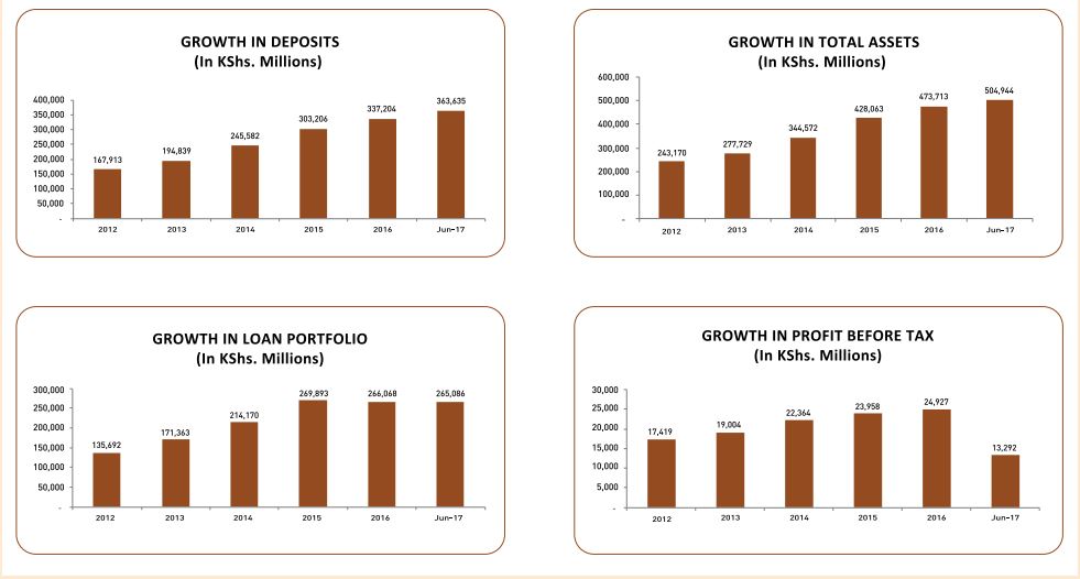 The Group posted a 14 percent growth in assets to reach Kshs 504.9B up from Kshs 444.4B for the period ended 30th June 2017. This was largely driven by growth in deposits which went up by 13 percent to Kshs.363.6B up from Kshs 320.8B in the same period last year.