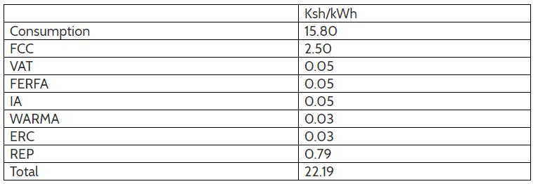 REP – This is a 5% levy on the cost of the units of power consumed by a customer. Mostly, the levy is passed on to the Rural Electrification Authority (REA) for implementation of the rural electrification projects.
