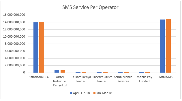 The image below shows SMSs per service provider in April to June period compared to January to March period.