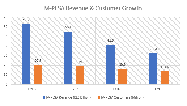 In 2017’s financial year, M-PESA customers grew to 19 million shillings with revenue of 55.1 billion shillings and in this half year’s financial release, the product did not disappoint as it grew its customer base to an impressive 20.5 million shillings with 62.9 billion shillings.