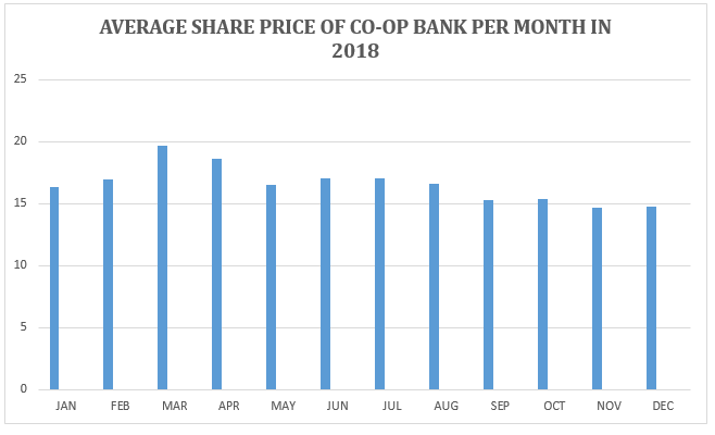 Its share price averaged at 16.58 shillings per share in 2018, hitting the highest in March at 19.7 shillings per share in March.