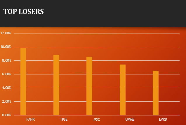 Stanlib Fahari Income – REIT was the top loser of the day with 9.80 percent at the price of 8.10 shillings per share followed by TPS East Africa (Serena) with 8.84 percent at the price of 18.05 shillings per share.