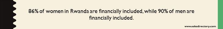 According to the Finscope Survey 2016, the overall gender gap in financial inclusion in Rwanda is relatively small. In terms of the total rate of financial inclusion, women show a difference of 4 percentage points.