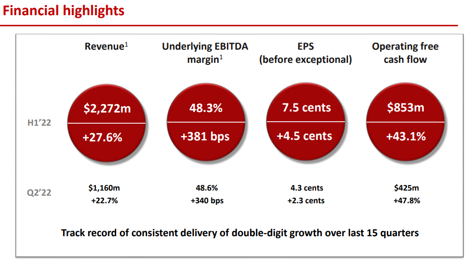 The board has declared an interim dividend of 2 cents per share (1.5 cents in H1’21) in line with an upgraded dividend policy. The new policy aims to grow the dividend annually by a mid to high-single-digit percentage from a new base of 5 cents per share for FY 2022, with a continued focus to further strengthen the balance sheet.