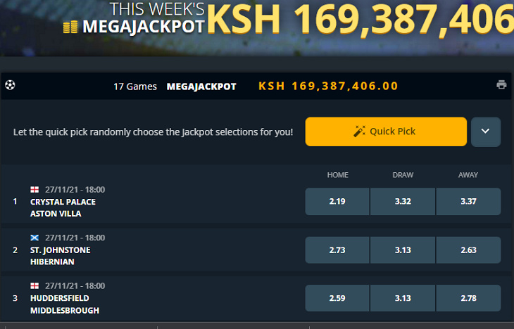 The SportPesa Mega Jackpot has 17 games. For you to win, you have to make 17 correct predictions. And all is done for just 99 shillings.