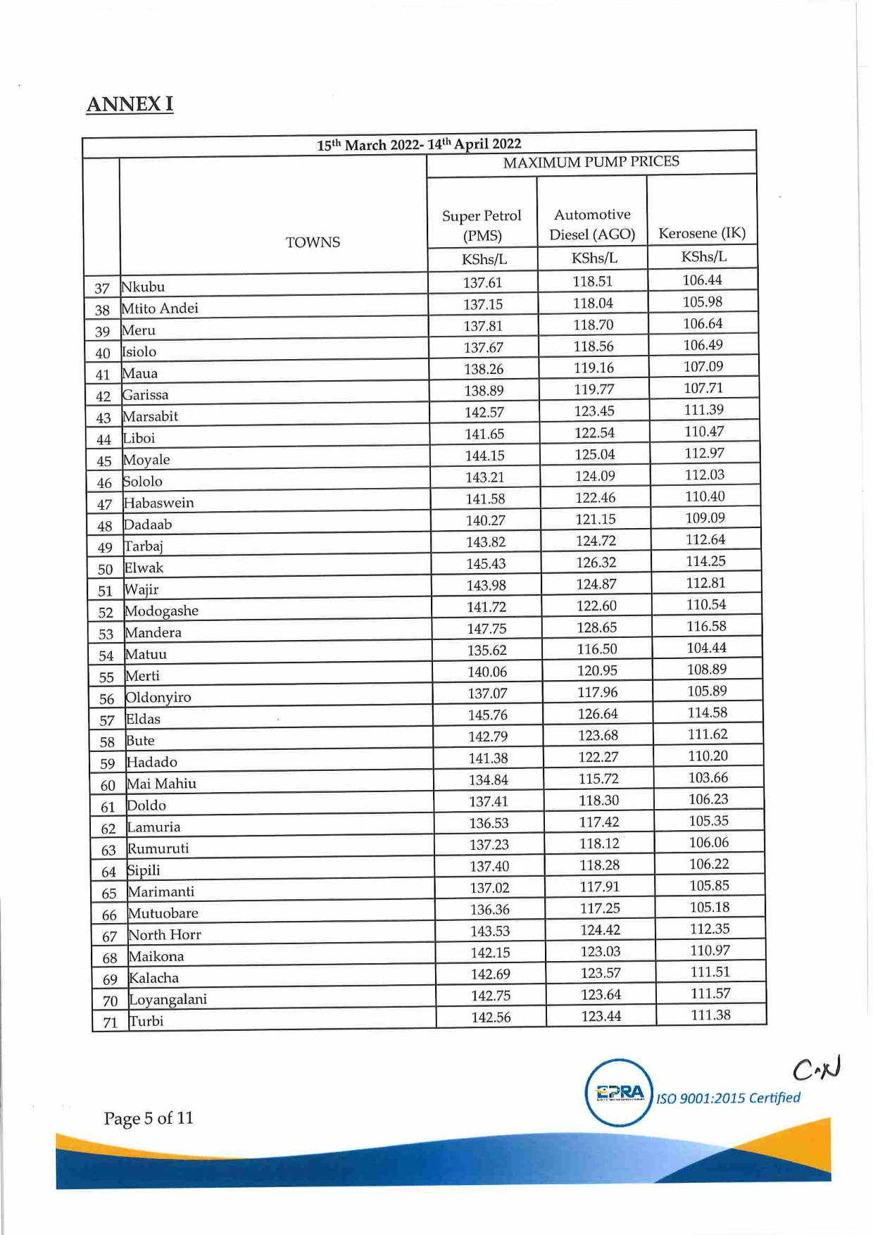 In accordance with Section 101(y) of the Petroleum Act 2019, Legal Notice No.196 of 2010 and Legal Notice No. 26 of 2012, @EPRA_Ke has calculated the maximum retail prices of petroleum products which will be in force from 15th March to 14th April 2022. ^BO pic.twitter.com/C9daRaFtKr