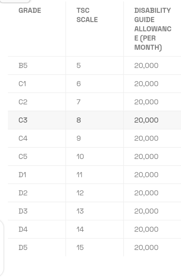 TSC Releases New Disability Guide Allowances For All Job Groups/Grades 2022