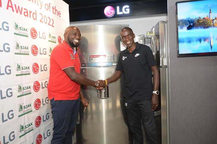 Speaking at the LG Eldoret showroom, Kipchoge hailed SJAK and LG for constantly recognizing sportsmen and women for their efforts and the glory brought to the country through their exemplary performances.