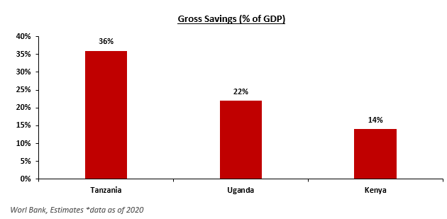 In the context of Kenya, we note that the country’s savings-to-GDP ratio has consistently trailed those of neighboring nations like Uganda and Tanzania for an extended period spanning over a decade as shown below: