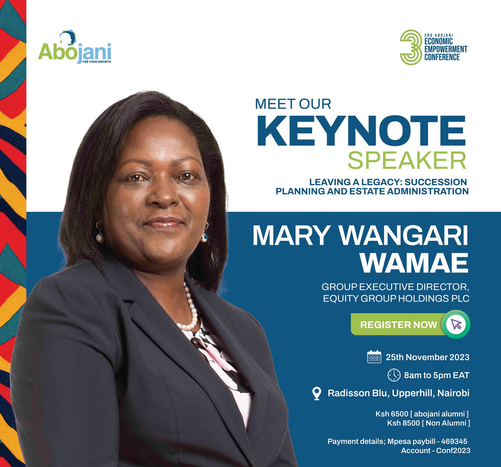 Among the key speakers will be Mary Wangari Wamae, the Group Executive Director of Equity Group who will touch on Succession Planning and Estate Administration.